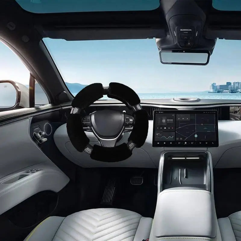 3.Improve your Driving Experience: Elevate your car's interior with this plush steering wheel cover that protects your wheel while providing better grip. Enjoy more control on the road with its non-slip and stable design.